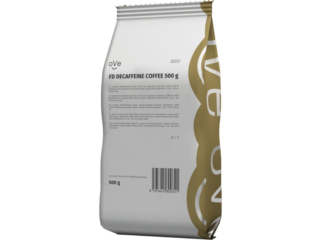 oVe FD DECAFFEINE COFFEE je 100% instantní bezkofeinová káva (freeze dried) určená pro nápojové automaty.